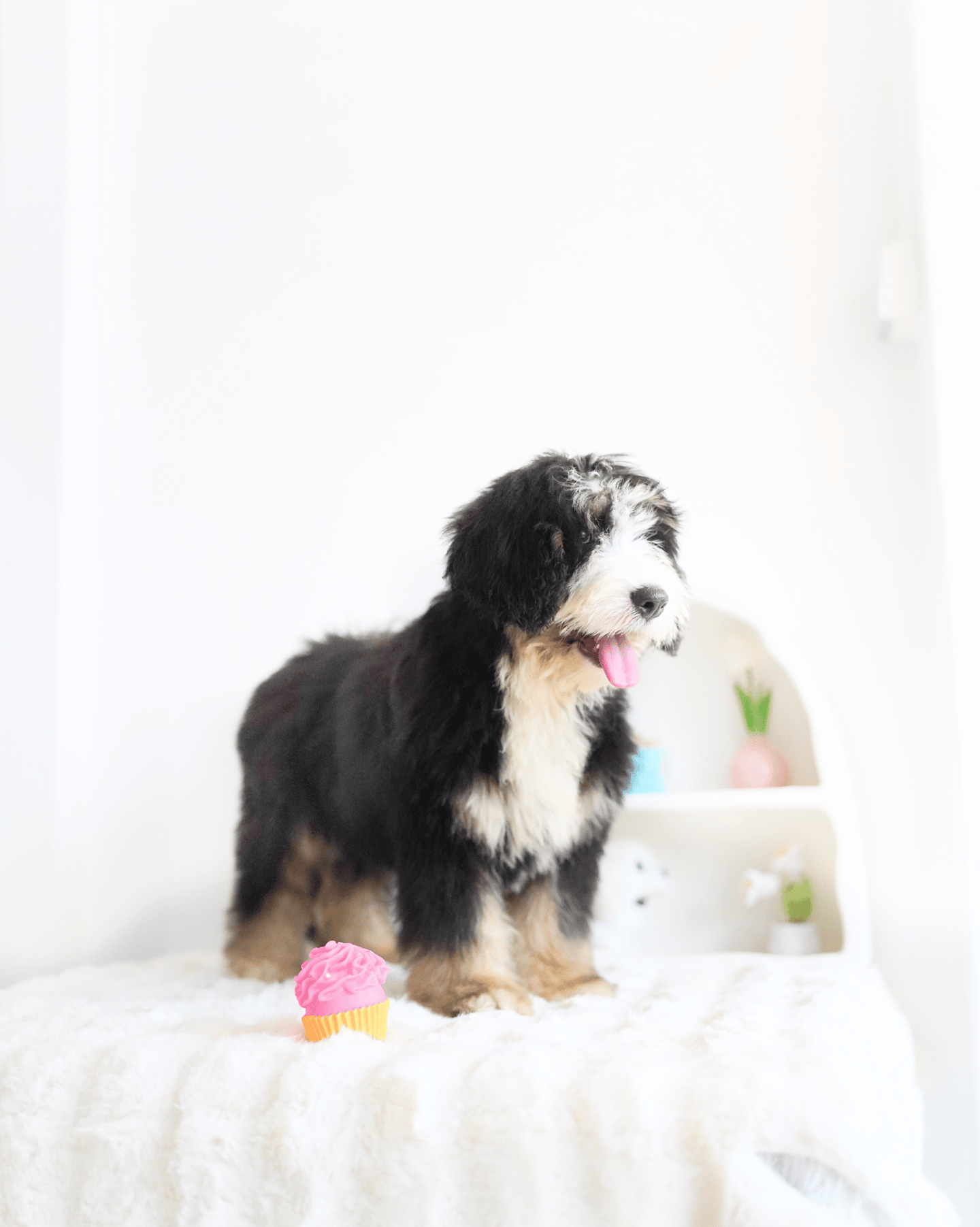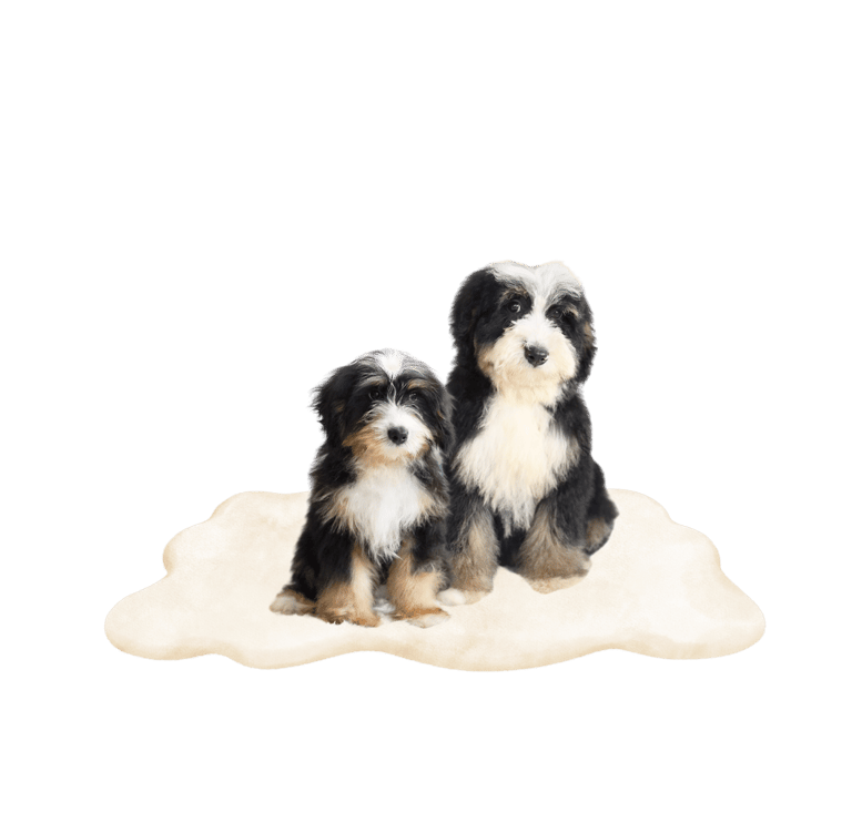 Our Bernedoodles offer a sweet spot between the larger Standard Bernedoodles and the smaller Tiny Bernedoodles, making them an ideal choice for many families and individuals. They are the perfect size for versatility, easier to manage in terms of exercise and space requirements. They’re well-suited for a variety of living situations, from apartments to homes with yards, while still being sturdy enough for outdoor adventures, hikes, or active playtime. They experience fewer health issues than larger dogs, which is why they may have fewer joint problems or the health concerns that affect larger breeds like Standard Bernedoodles. Lower grooming requirements such as low-shedding, hypoallegernic coats that don’t require the same level of meticulous grooming the other sizes may need.