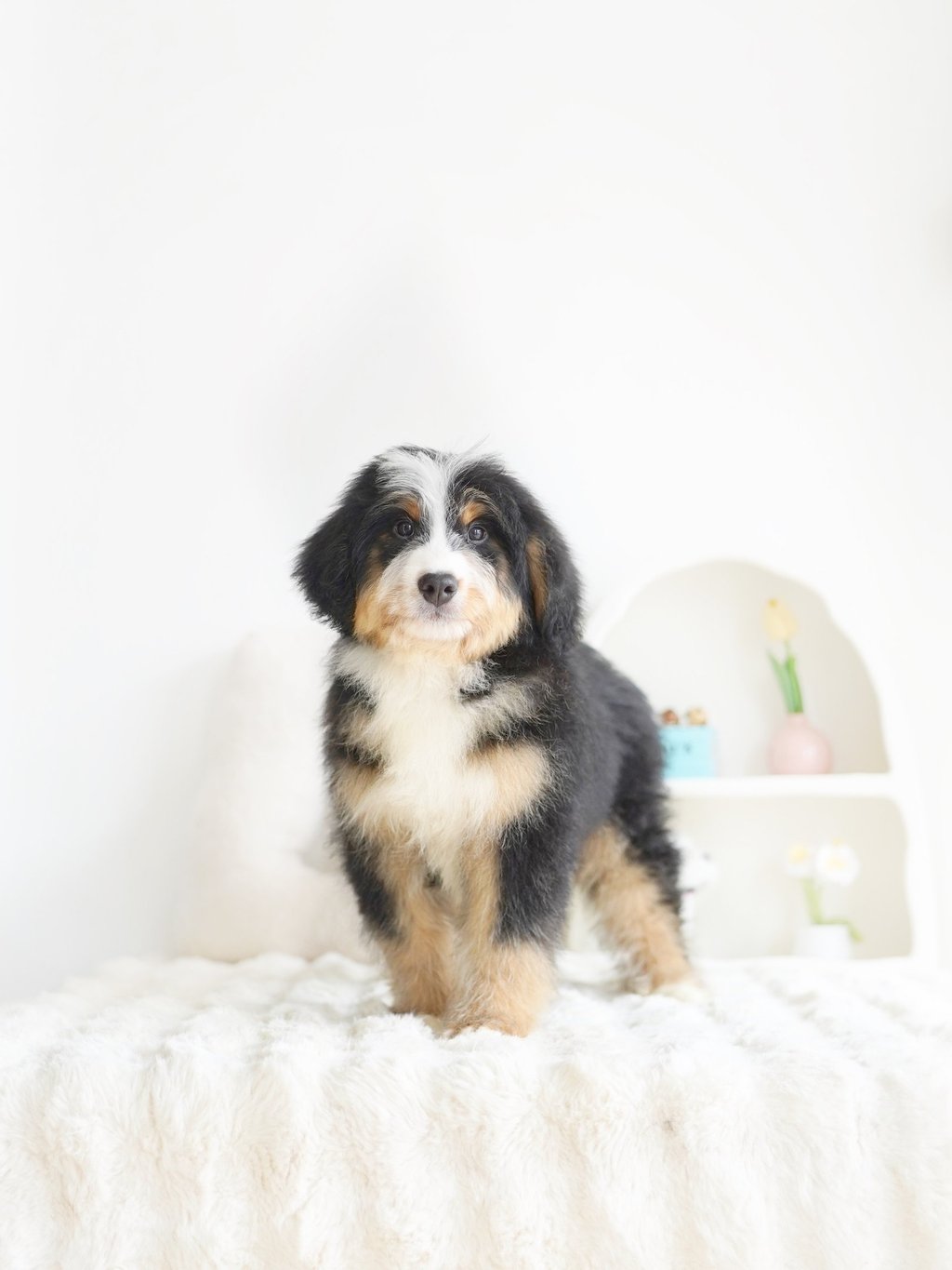 Before bringing your Bernedoodle puppy home, ensure your living space is safe and comfortable. Here are some tips to prepare: