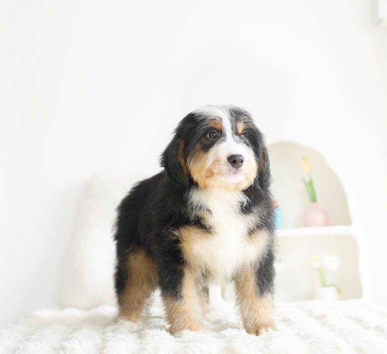 Bernedoodles are known for their lovable personality, intelligence, and low-shedding coats, making them a great choice for families, singles, and anyone looking for a loyal companion. Their blend of Bernese Mountain Dog's gentle nature and the Poodle's intelligence results in a dog that is both trainable and deeply affectionate. Whether you’re an active individual or have a more laid-back lifestyle, there’s a Bernedoodle that can fit right into your home.