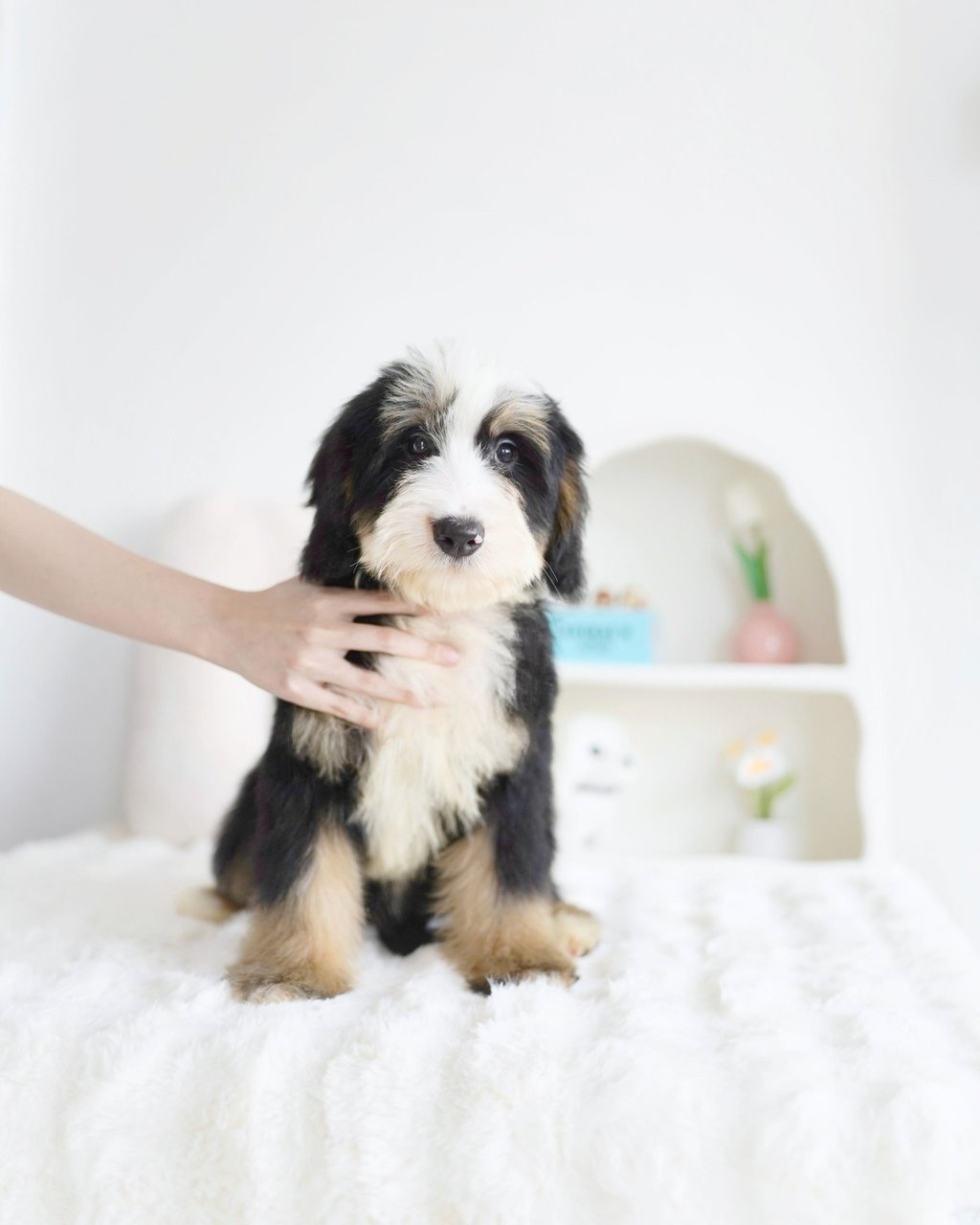 Before bringing your Bernedoodle puppy home, ensure your living space is safe and comfortable. Here are some tips to prepare: