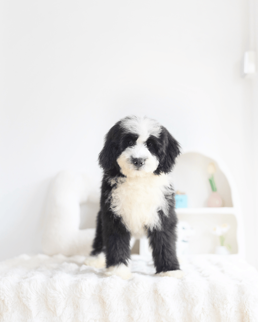 Before bringing your Bernedoodle puppy home, ensure your living space is safe and comfortable. Here are some tips to prepare: