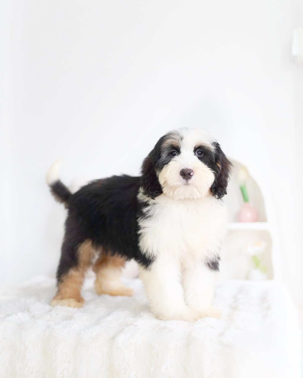 Before bringing your Bernedoodle puppy home, ensure your living space is safe and comfortable. Here are some tips to prepare: