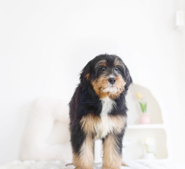 Bernedoodles are known for their lovable personality, intelligence, and low-shedding coats, making them a great choice for families, singles, and anyone looking for a loyal companion. Their blend of Bernese Mountain Dog's gentle nature and the Poodle's intelligence results in a dog that is both trainable and deeply affectionate. Whether you’re an active individual or have a more laid-back lifestyle, there’s a Bernedoodle that can fit right into your home.