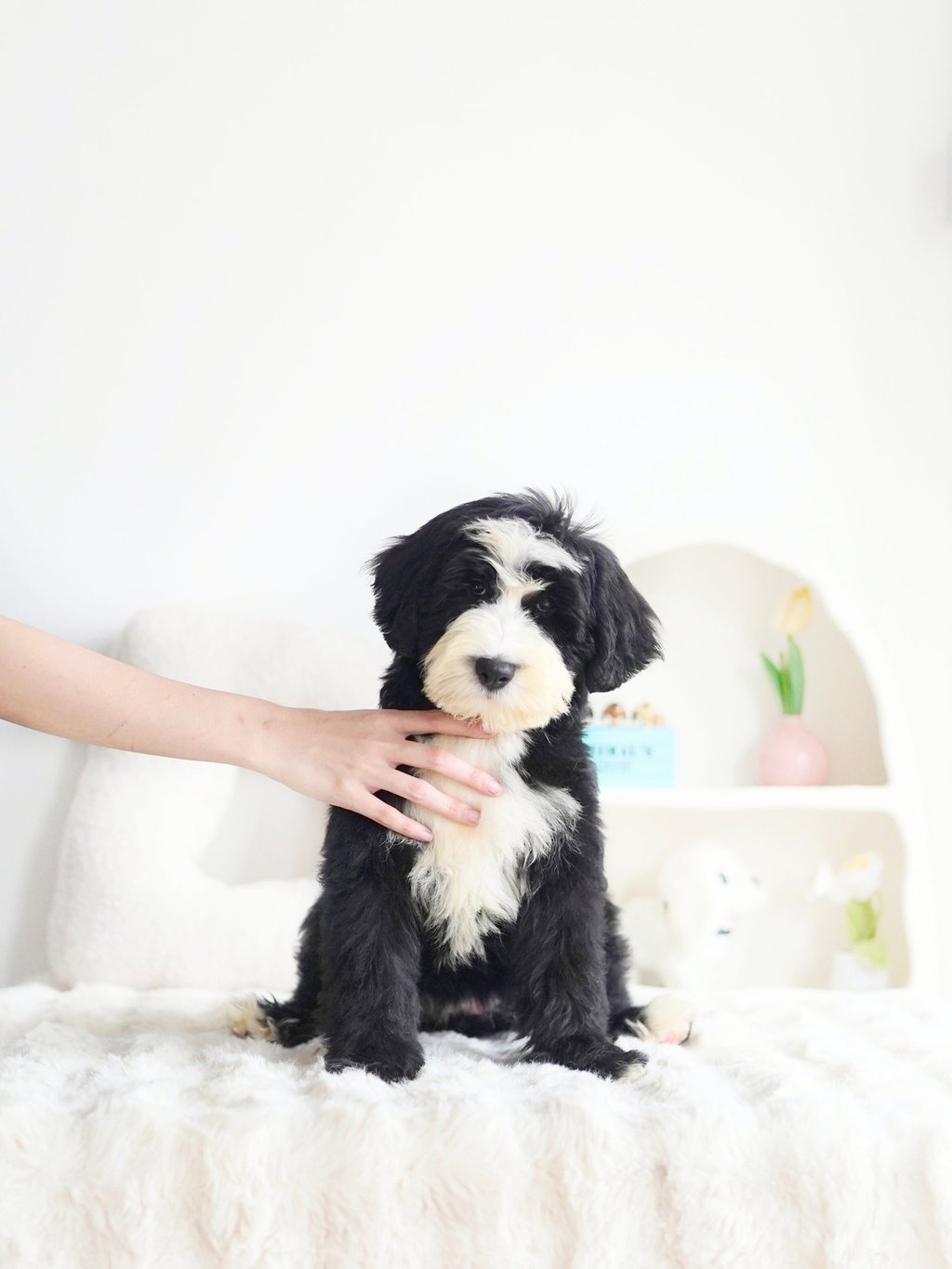 Before bringing your Bernedoodle puppy home, ensure your living space is safe and comfortable. Here are some tips to prepare: