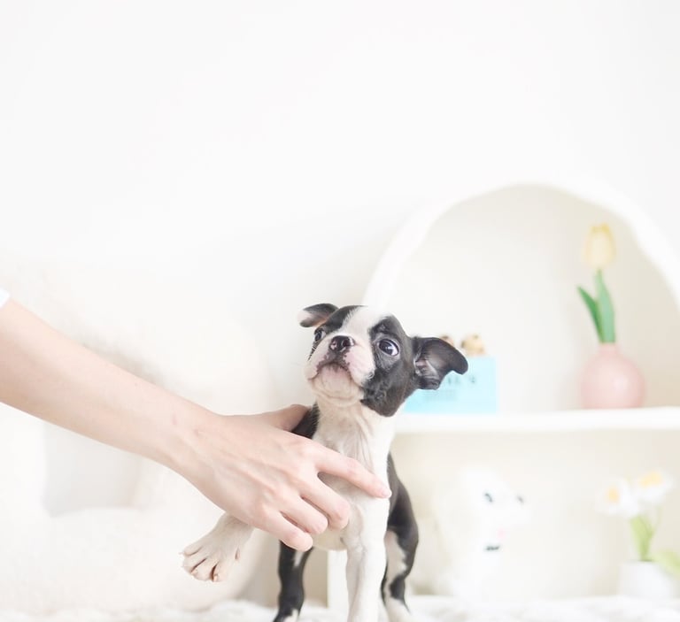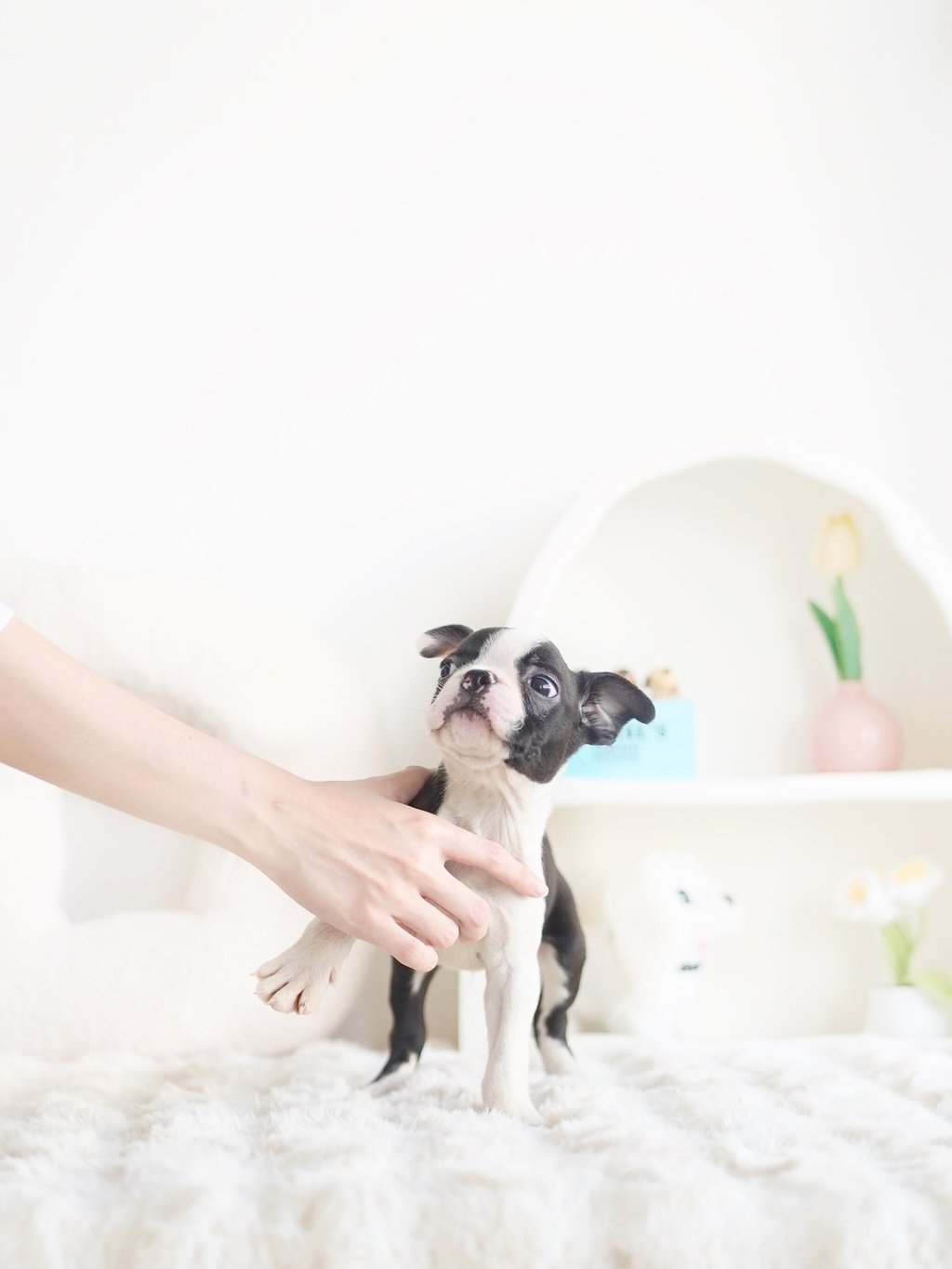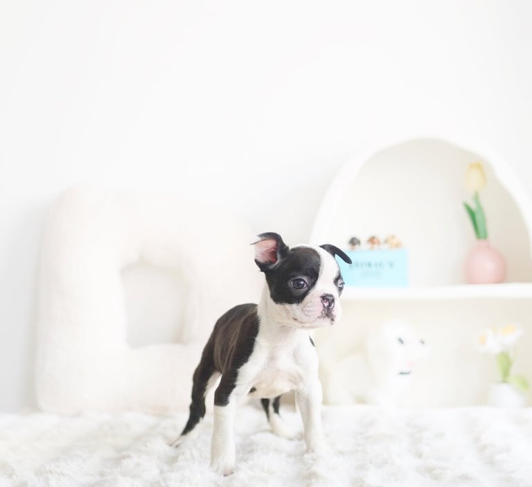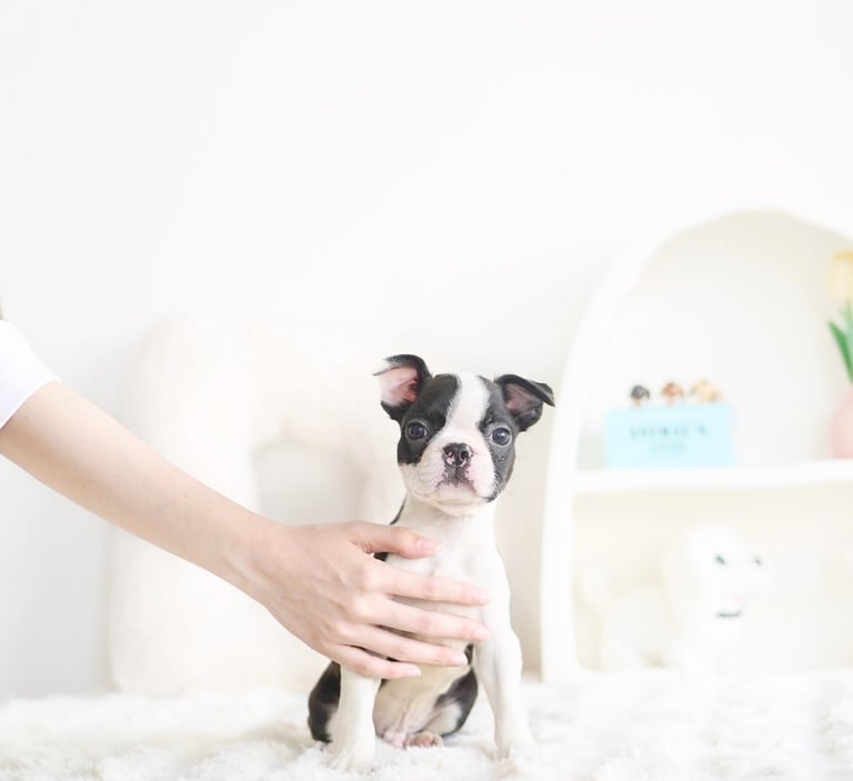 A small dog with a short, square muzzle and erect ears, the Boston Terrier is strong and well-muscled with eyes which are fairly large, round and wide apart. Originally bred as fighting dogs, this unusual looking breed soon found its place in the hearts and homes of people across the world.