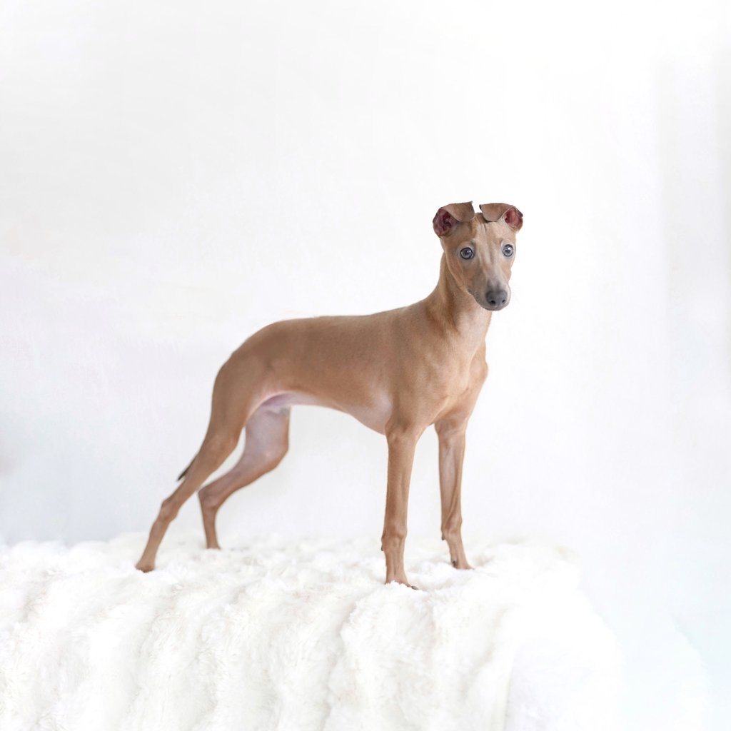 Temperament: Italian Greyhounds are known for their gentle and affectionate nature. They are often described as "couch potatoes" because they enjoy lounging and cuddling with their owners. Despite their calm demeanor indoors, they can be quite playful and active when they are outdoors. They are generally good with children and other pets, although their delicate frame means they should be handled gently.