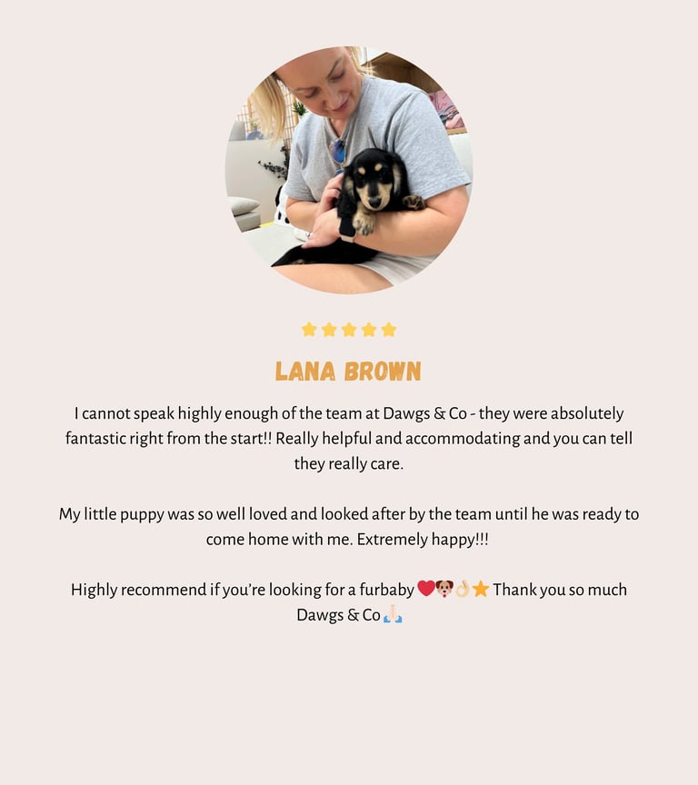 At Dawgs & Co. , we are passionate about connecting loving families with the perfect furry companions to enrich their lives. Our journey began with a deep love and appreciation for the unique bond between humans and dogs. We understand that a dog is more than just a pet; they are loyal friends, joyful playmates, and cherished members of our families.