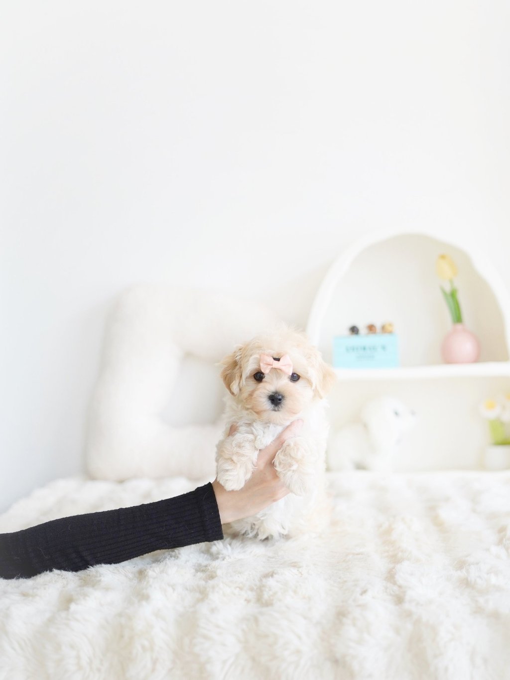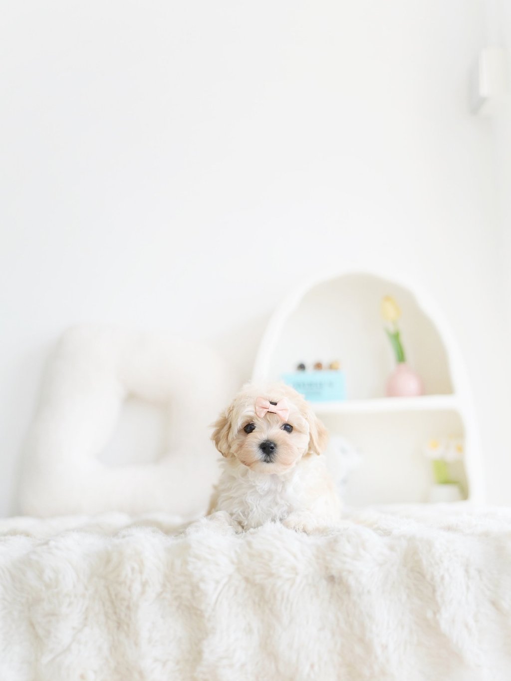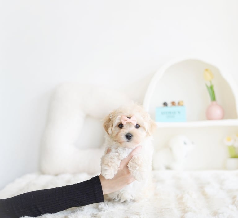 Personality: Mini Maltese dogs are known for their gentle, affectionate, and playful nature. They are highly social and enjoy the company of their human family members. They often form strong bonds with their owners and can be quite loyal and protective.