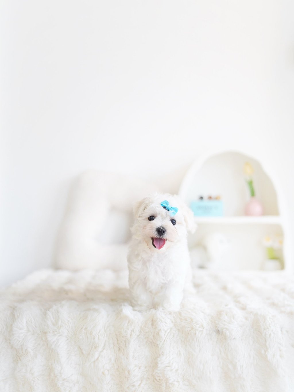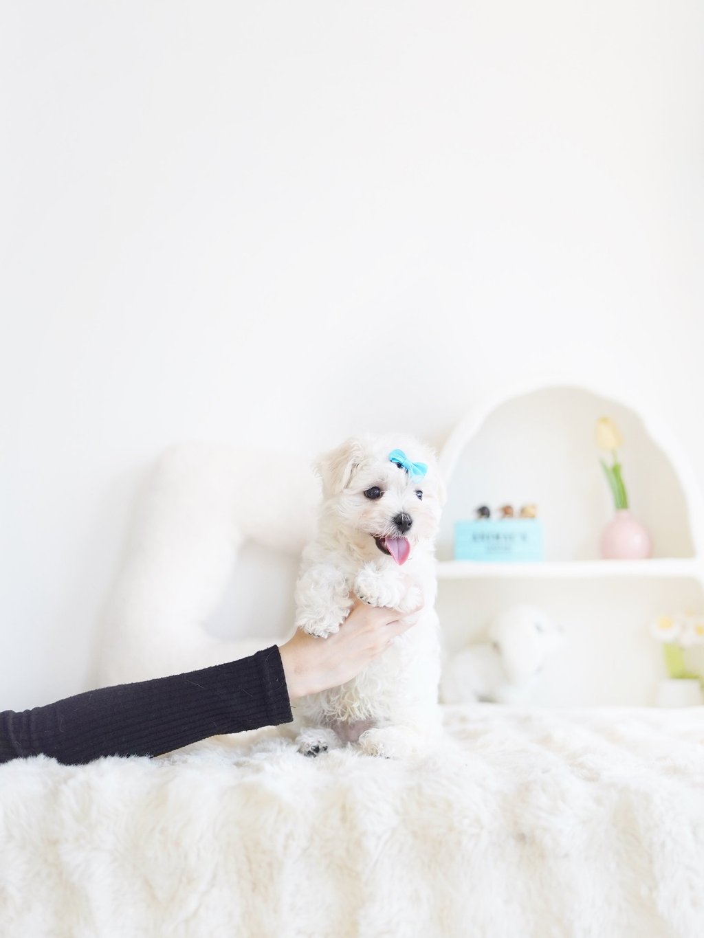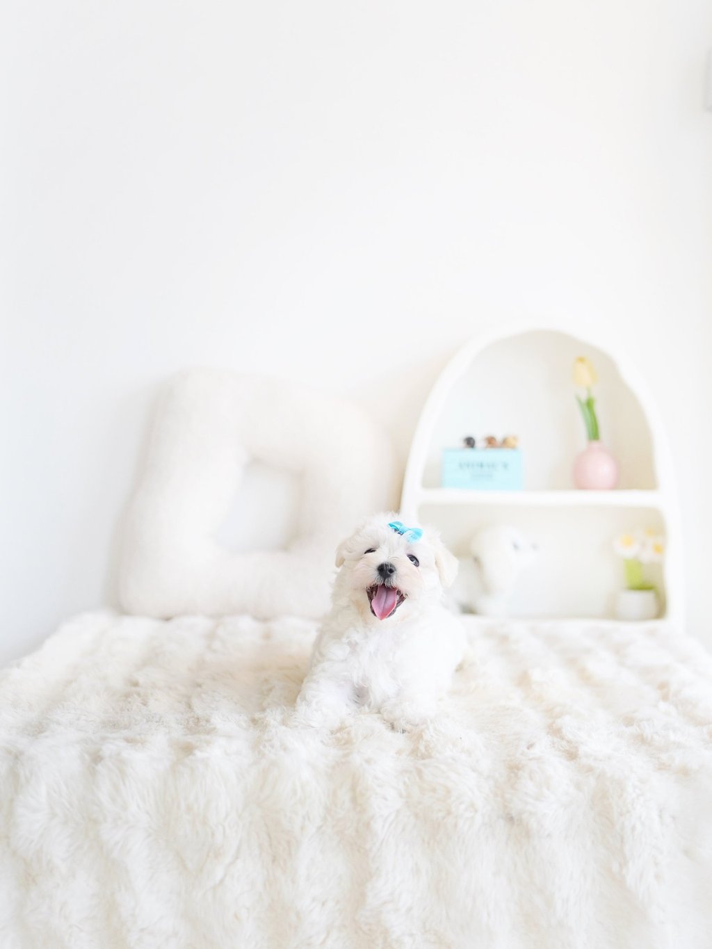 Personality: Mini Maltese dogs are known for their gentle, affectionate, and playful nature. They are highly social and enjoy the company of their human family members. They often form strong bonds with their owners and can be quite loyal and protective.