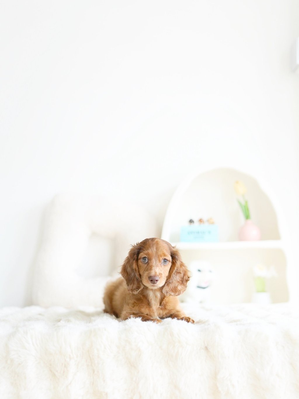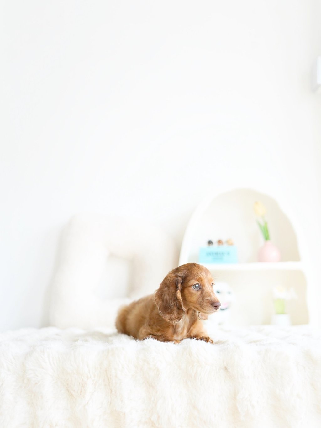 That's how we ended up bringing one home with us - Blue, our shaded cream mini dachshund, of course!"