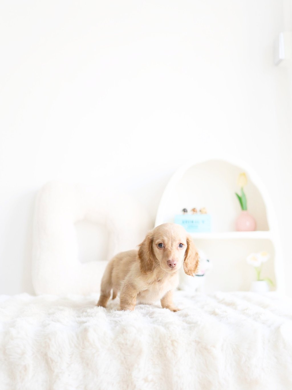 ”Had been looking for a cream dachshund for months until coming across Dawgs & Co. Made a last minute appointment for viewing and brought home my furbaby in 2 hours!