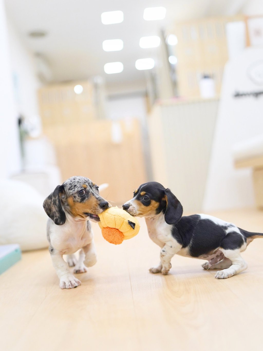 Miniature Dachshunds are intelligent and spirited. Start training early, focusing on obedience, socialization, and housebreaking. Consider enrolling in puppy training classes or seeking guidance from professional dog trainers if needed.