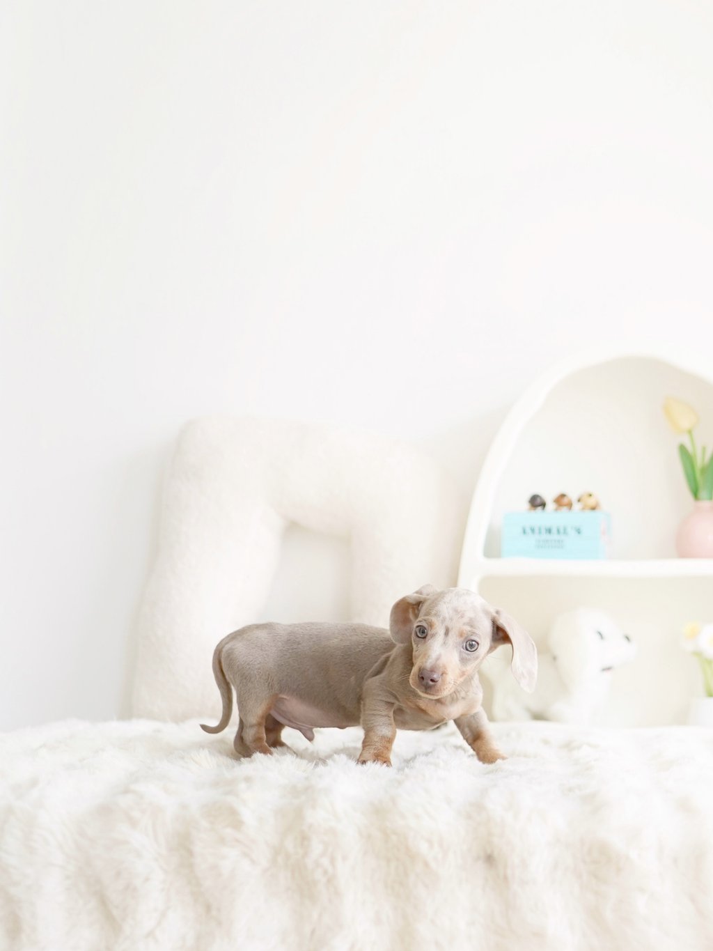 That's how we ended up bringing one home with us - Blue, our shaded cream mini dachshund, of course!"
