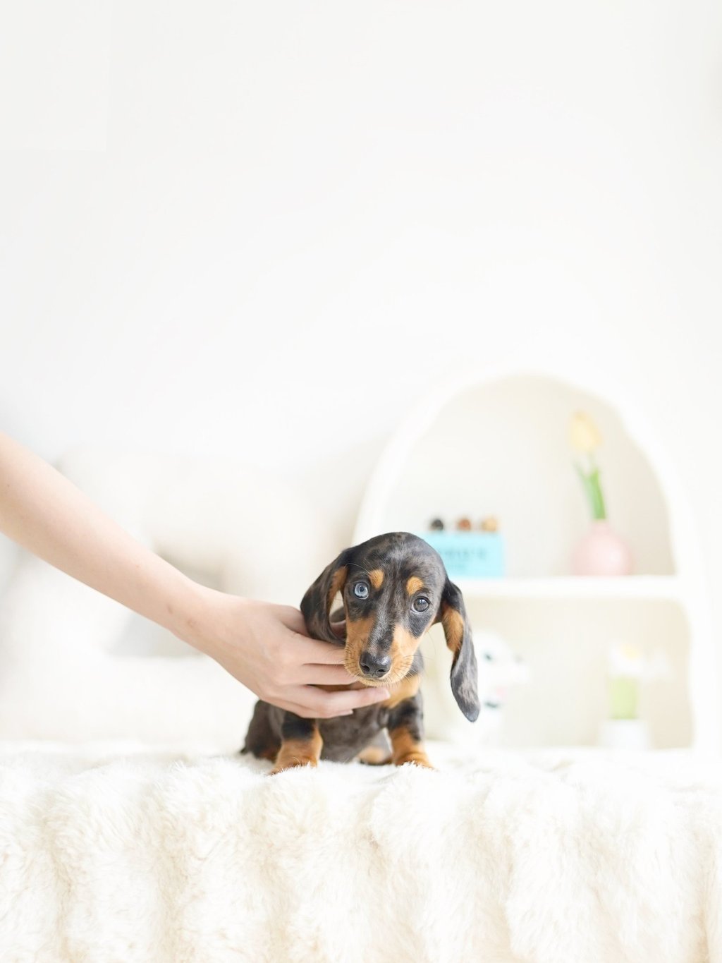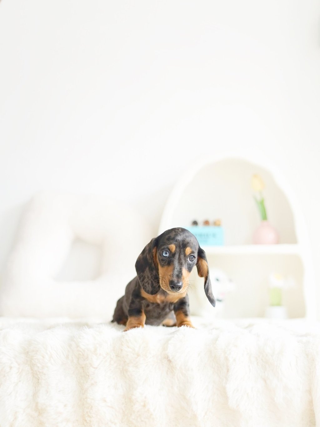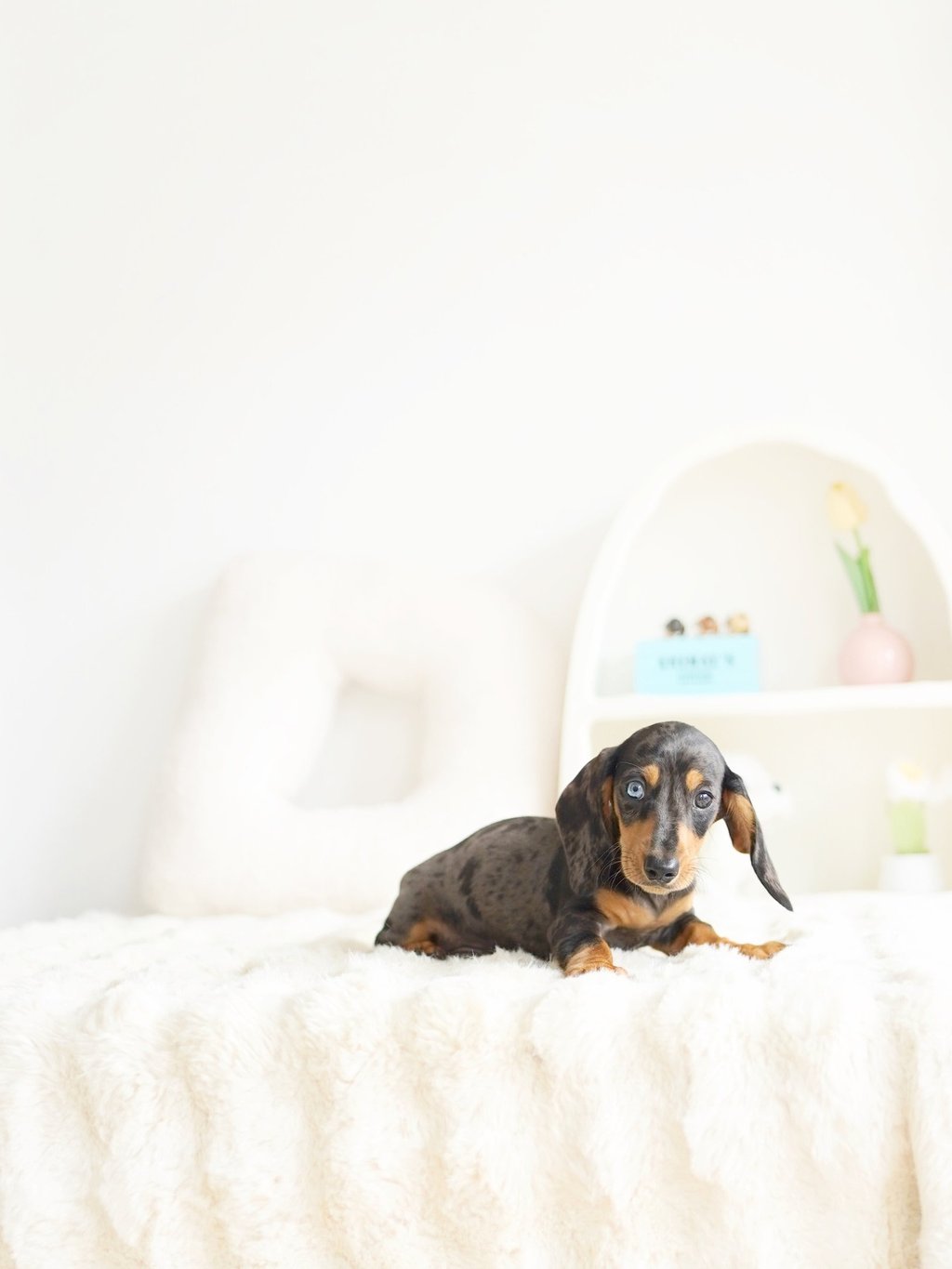 That's how we ended up bringing one home with us - Blue, our shaded cream mini dachshund, of course!"