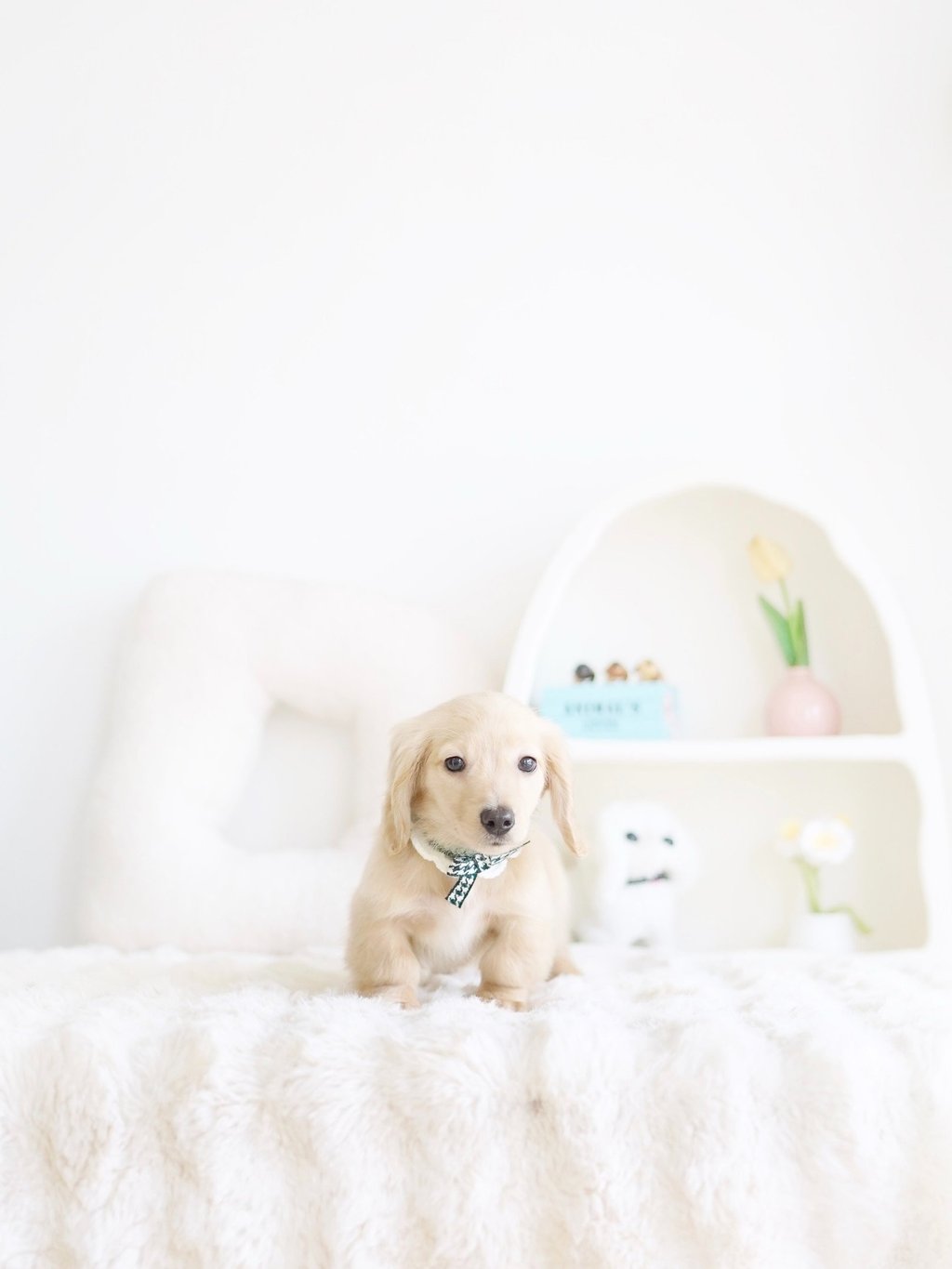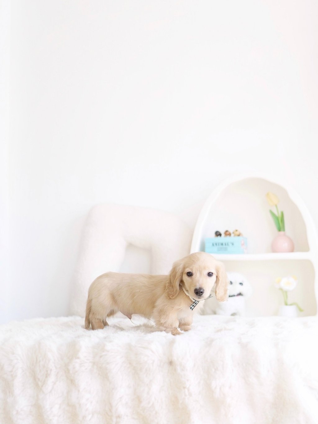”Had been looking for a cream dachshund for months until coming across Dawgs & Co. Made a last minute appointment for viewing and brought home my furbaby in 2 hours!