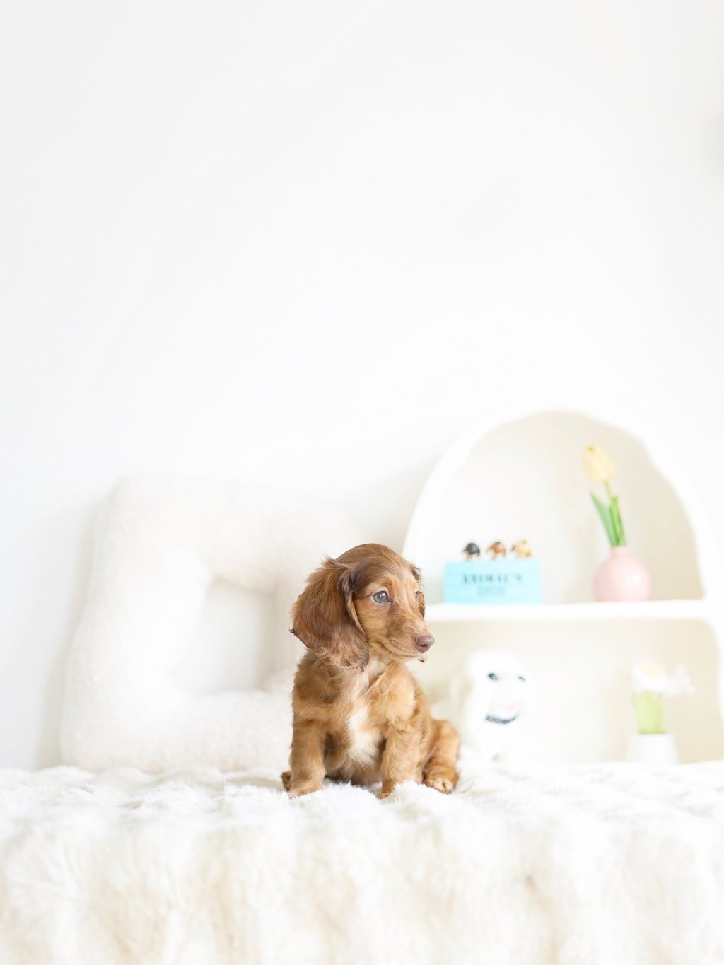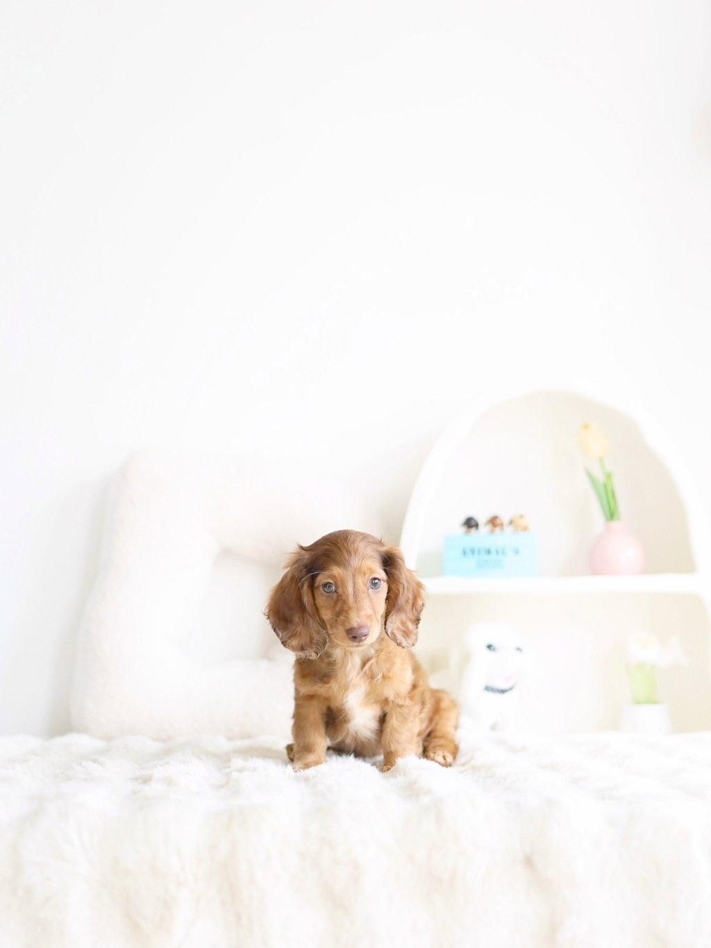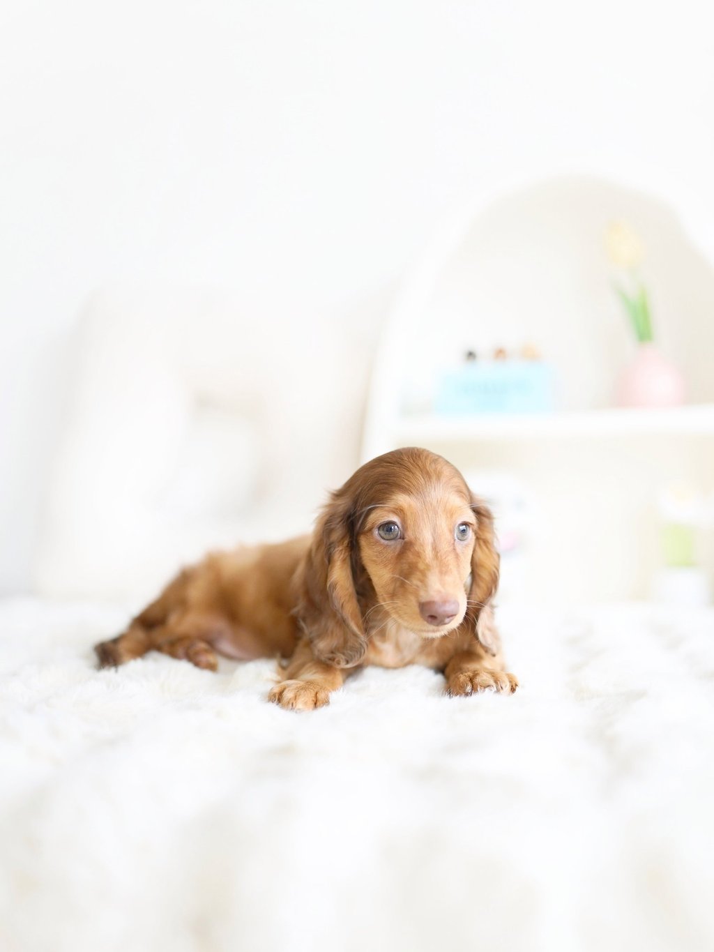 That's how we ended up bringing one home with us - Blue, our shaded cream mini dachshund, of course!"