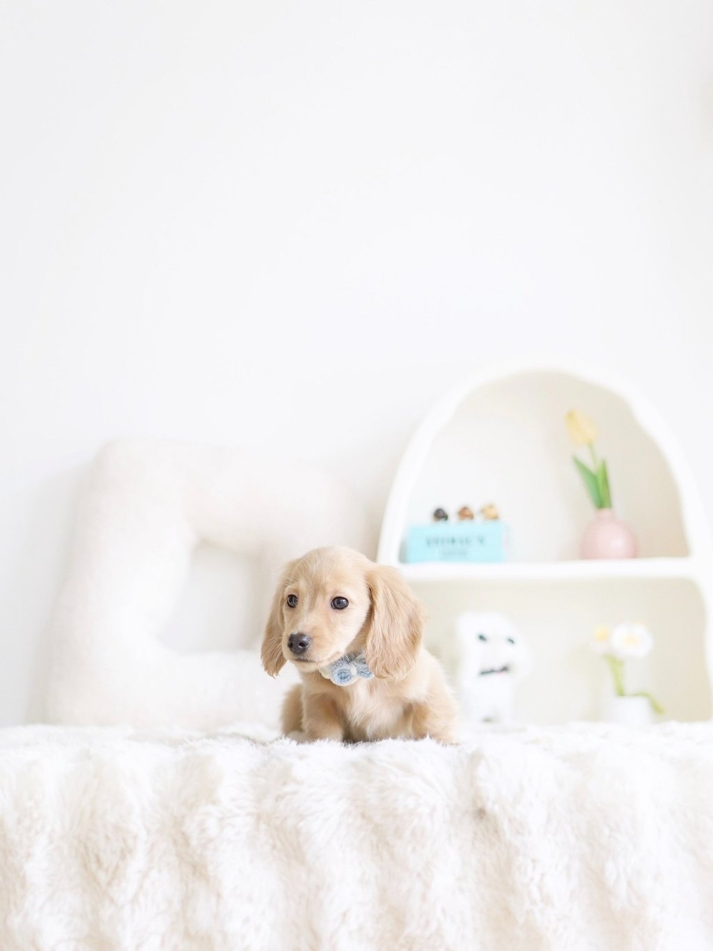 That's how we ended up bringing one home with us - Blue, our shaded cream mini dachshund, of course!"