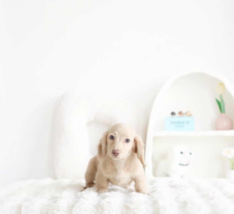 ”Had been looking for a cream dachshund for months until coming across Dawgs & Co. Made a last minute appointment for viewing and brought home my furbaby in 2 hours!