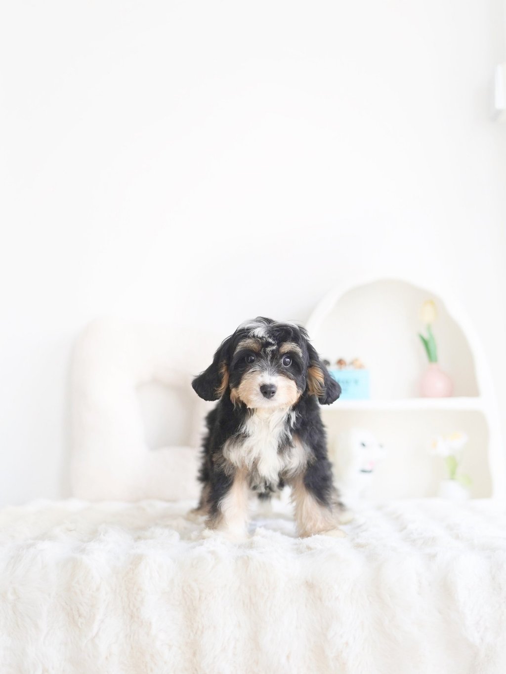 Before bringing your Bernedoodle puppy home, ensure your living space is safe and comfortable. Here are some tips to prepare: