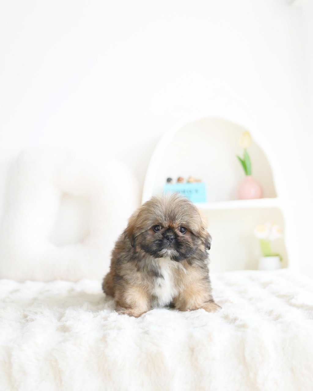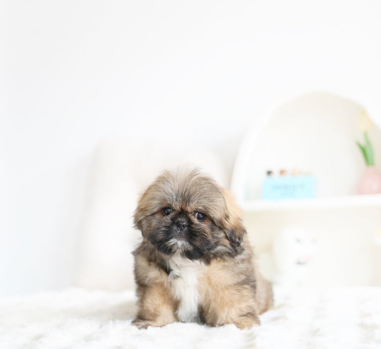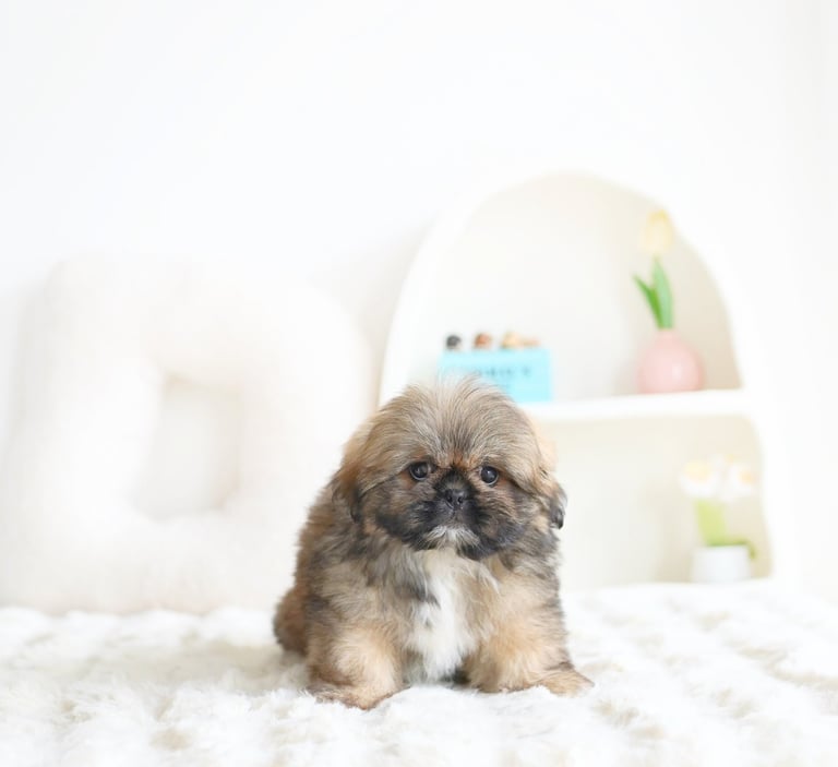 Pekingese x Shih Tzu puppies, also known as “Shinese”, are small, fluffy bundles of charm and personality 🐶✨ These adorable hybrids blend the regal elegance of the Pekingese with the affectionate, friendly nature of the Shih Tzu, making them the perfect lap companions. Shinese pups are incredibly loyal, love to cuddle, and thrive on human attention, making them amazing pets for families, singles, or seniors alike 🏡❤️. They’re happiest when they’re part of the action—and your heart!
