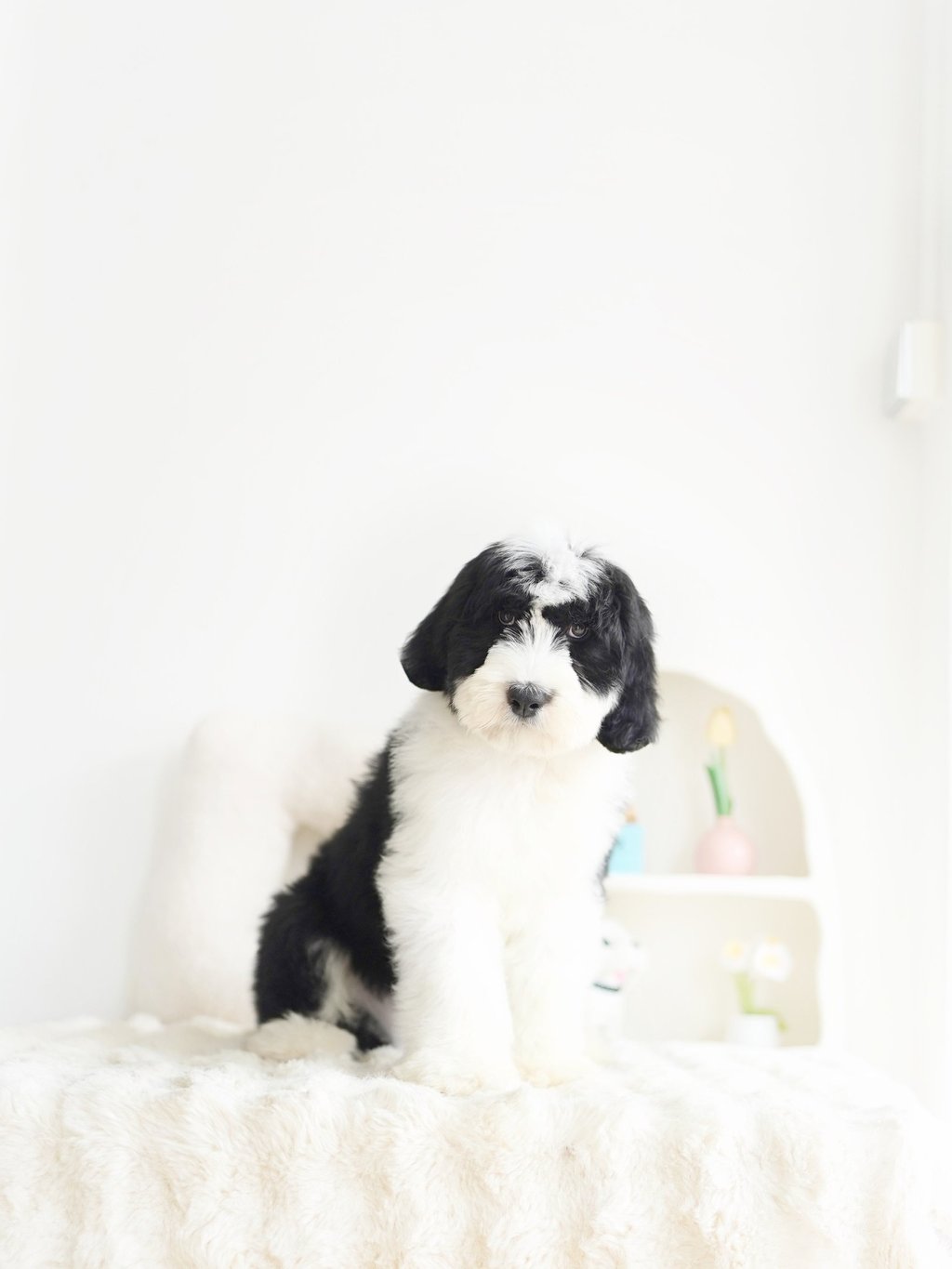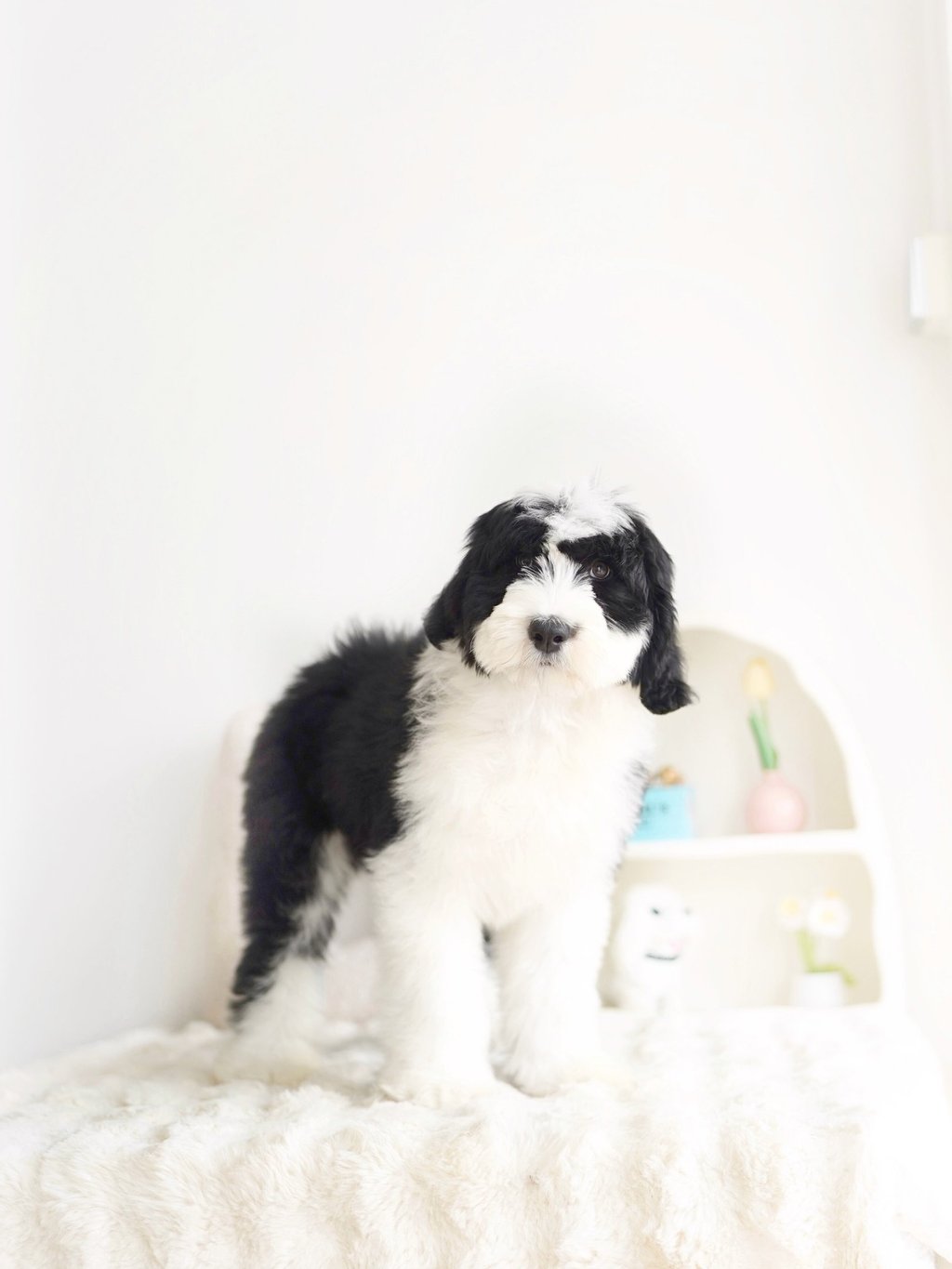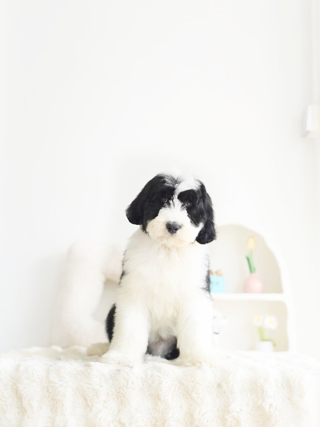 Before bringing your Sheepadoodle home, prepare your living space:Puppy-Proof Your Home: Secure loose wires, keep small objects out of reach, and block off unsafe areas.Stock Up on Essentials: Food and water bowls, puppy food, a comfy bed, toys, grooming supplies, and training pads.Plan for Training & Socialization: Start early with positive reinforcement and introduce your puppy to different people, sounds, and environments.