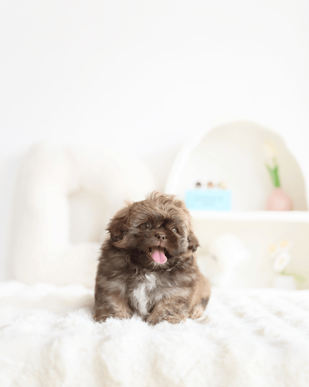 A Shih Tzu, pronounced "shee-dzoo," is a small toy dog breed known for its luxurious, long, and flowing coat, as well as its friendly and affectionate personality. Shih Tzus are a beloved breed among dog enthusiasts and make wonderful companions. Here are some key characteristics and information about Shih Tzus: