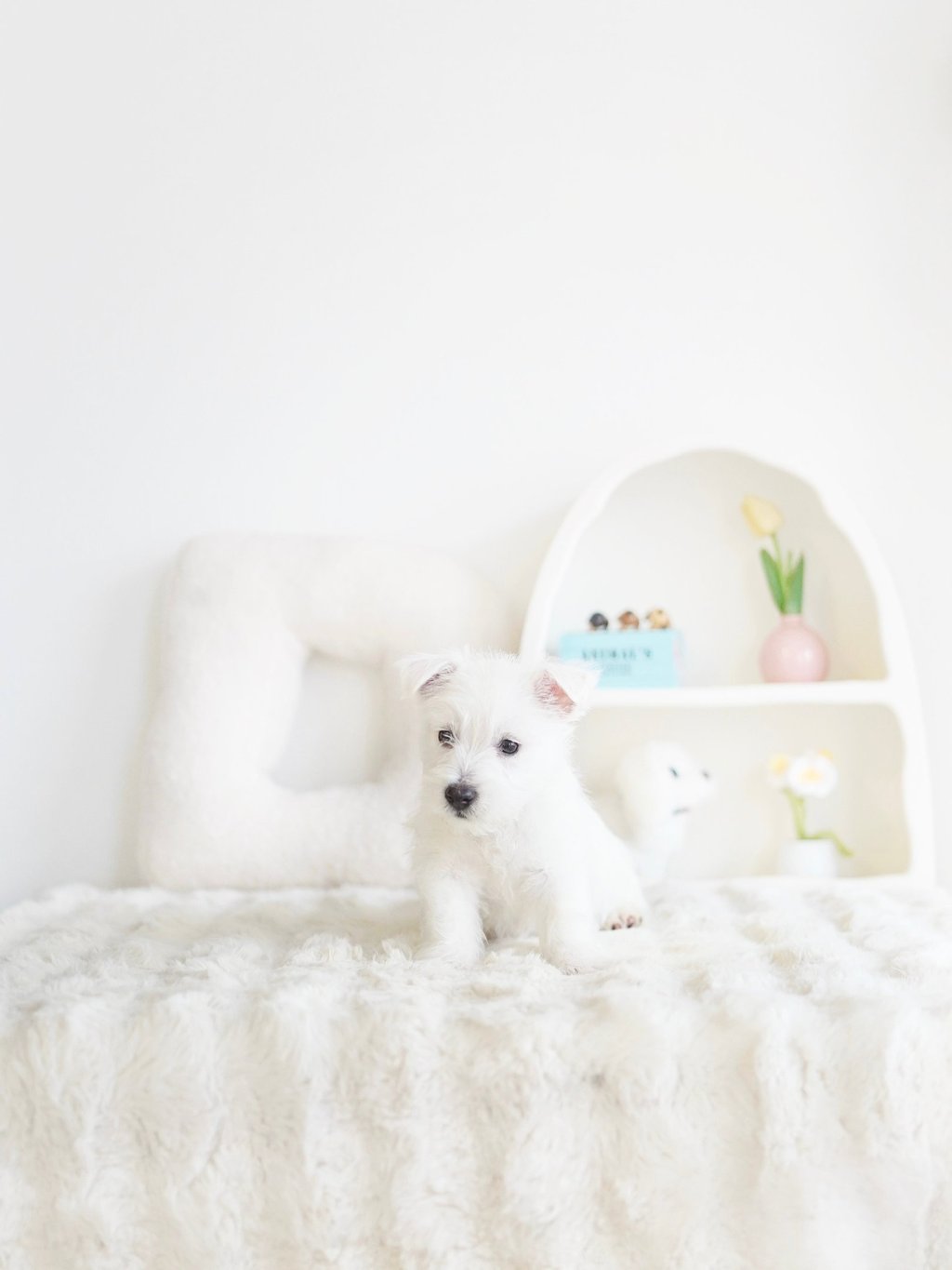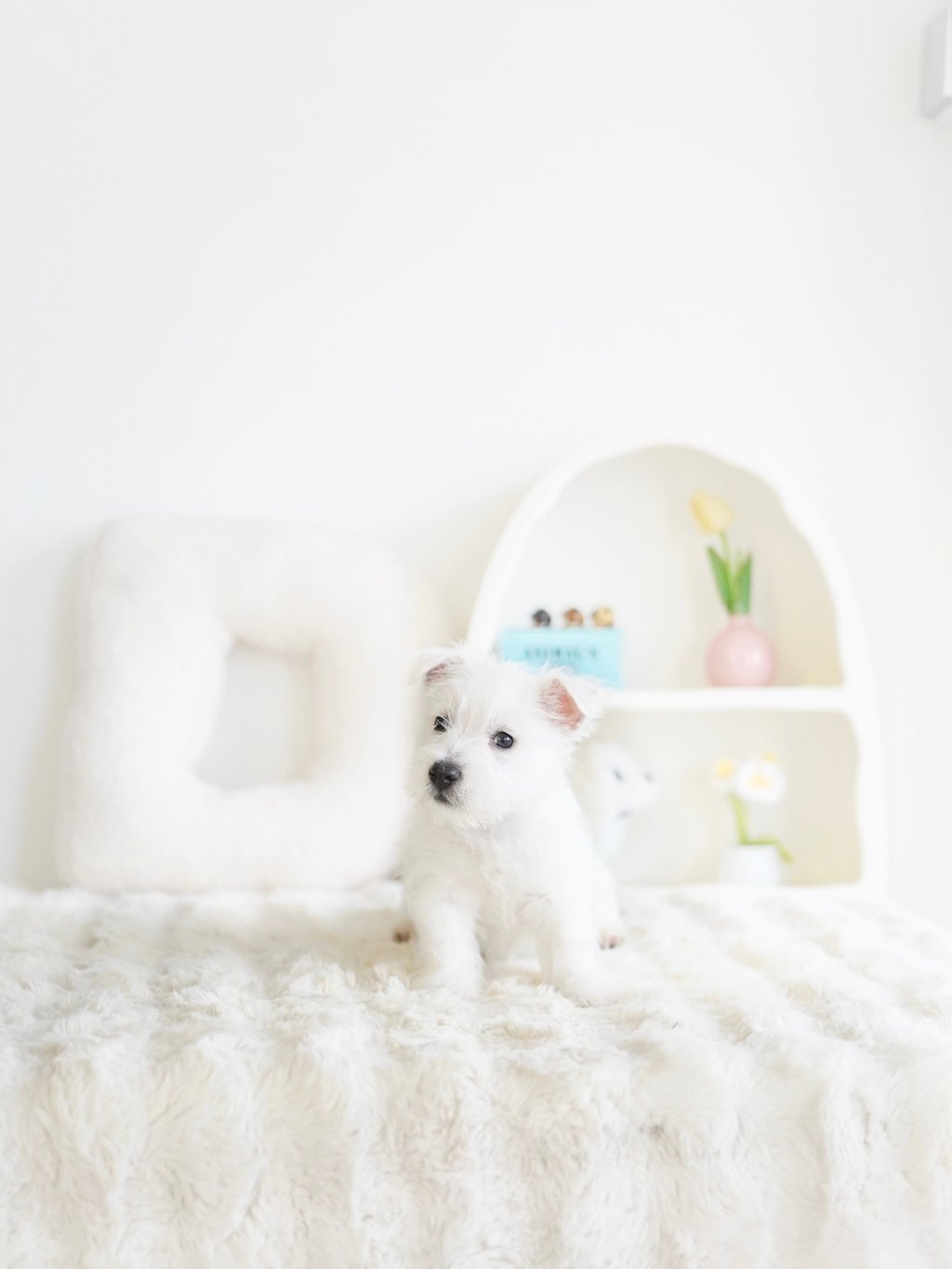 The West Highland White Terrier is a breed of dog from Scotland with a distinctive white harsh coat and somewhat soft white undercoat. It is a medium-sized terrier.