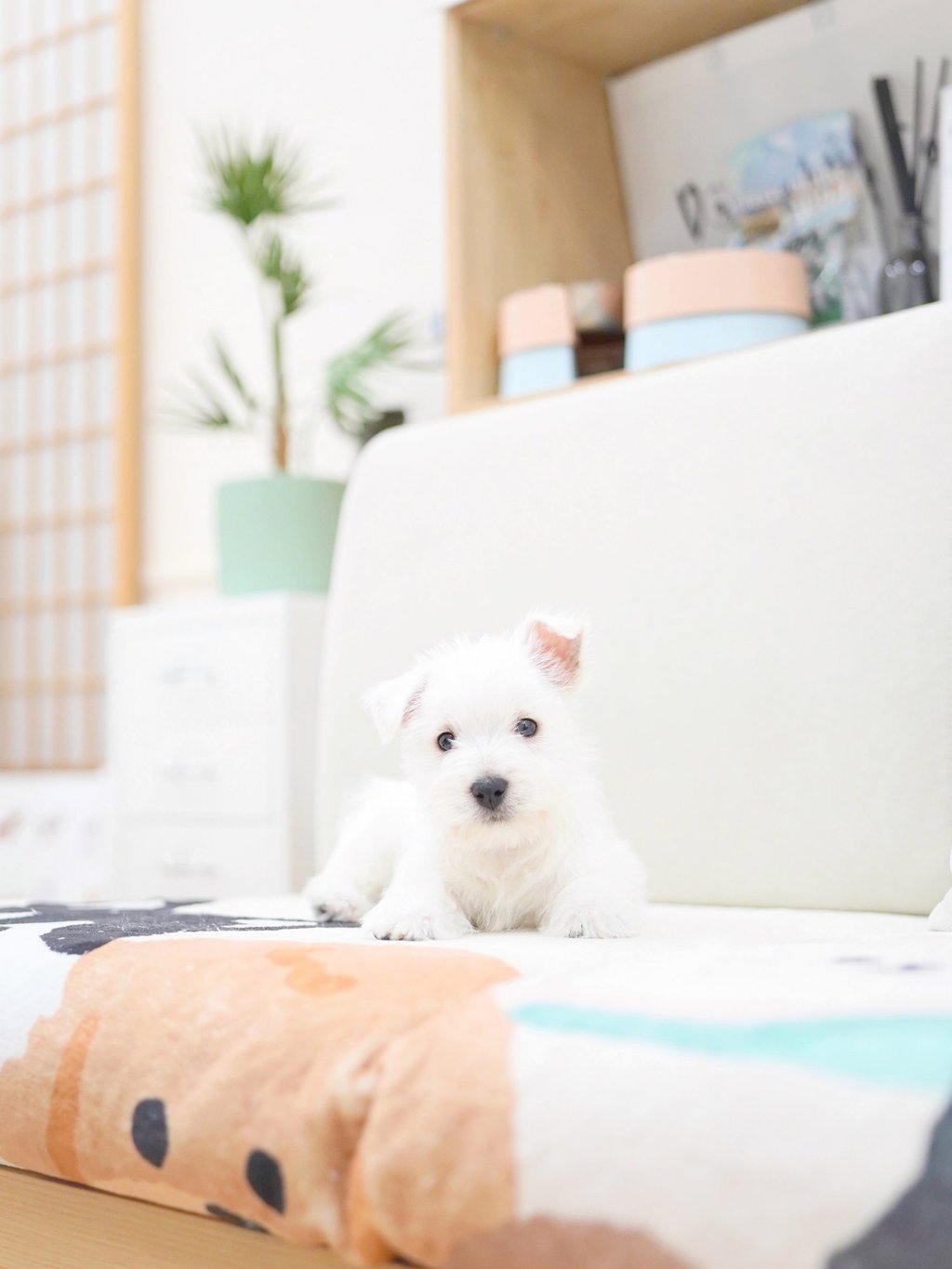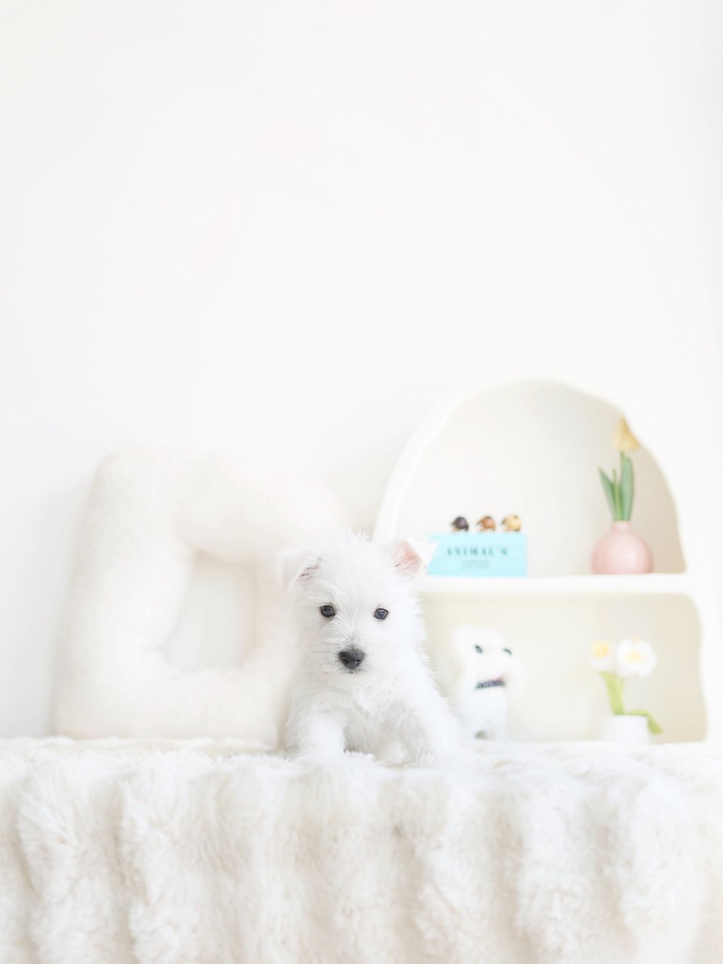 The West Highland White Terrier is a breed of dog from Scotland with a distinctive white harsh coat and somewhat soft white undercoat. It is a medium-sized terrier.