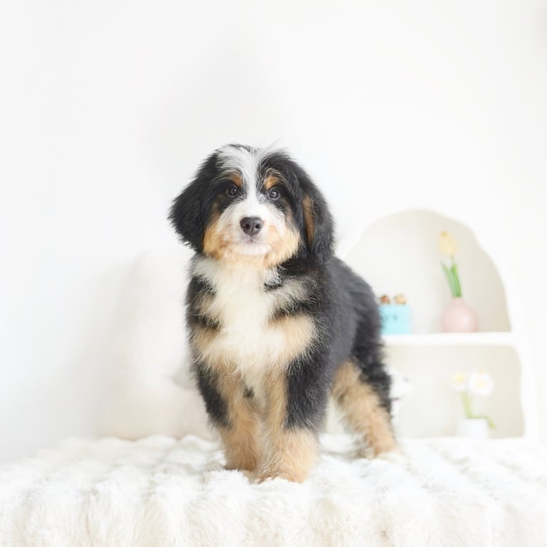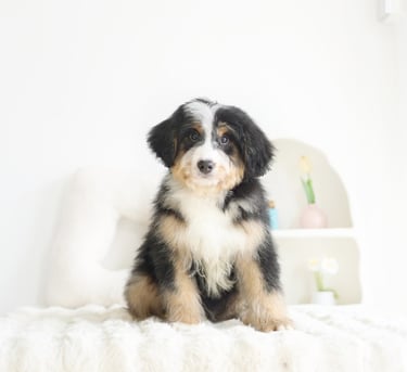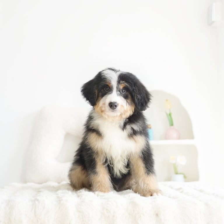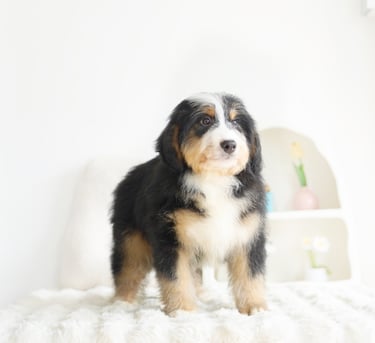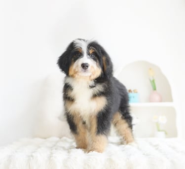 Bernedoodles are known for their lovable personality, intelligence, and low-shedding coats, making them a great choice for families, singles, and anyone looking for a loyal companion. Their blend of Bernese Mountain Dog's gentle nature and the Poodle's intelligence results in a dog that is both trainable and deeply affectionate. Whether you’re an active individual or have a more laid-back lifestyle, there’s a Bernedoodle that can fit right into your home.