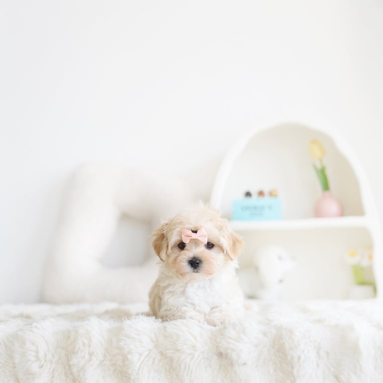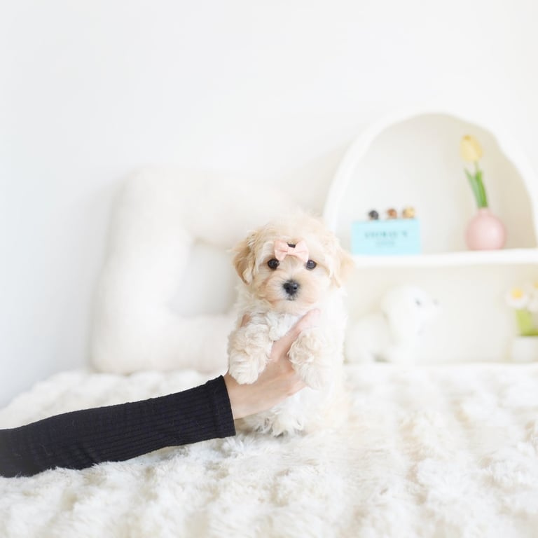 Personality: Mini Maltese dogs are known for their gentle, affectionate, and playful nature. They are highly social and enjoy the company of their human family members. They often form strong bonds with their owners and can be quite loyal and protective.